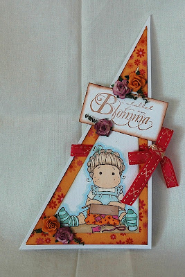 Jag hade motivet för mig som jag ville använda och även hälsningen, men sedan gick snabbt att göra kortet... Lite blommor som dekoration och ett band som höll ihop kortet.